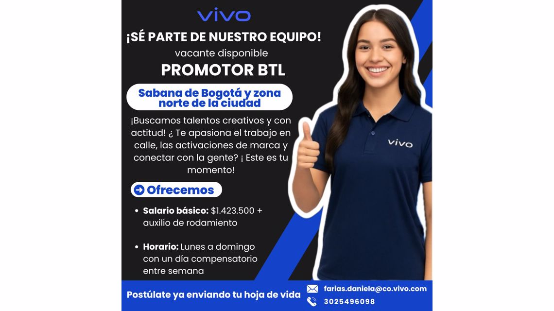 • Salario básico: $1.423.500 + auxilio de rodamiento+comision por venta